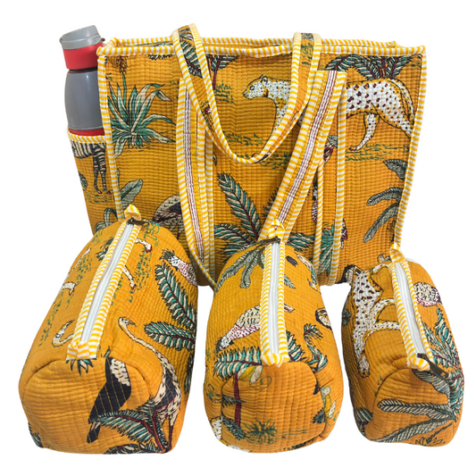 4-in-1 Festive Gifting COMBO : Premium Quilted Tote Bag + 3 Waterproof Pouches = Your Complete Organization Solution!
