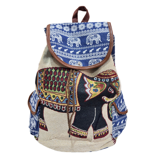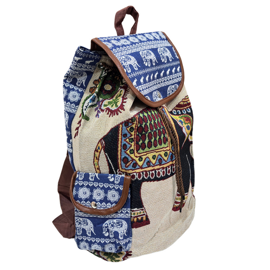 Trekking Paradise Edition: Canvas Elephant Print Drawstring Backpack
