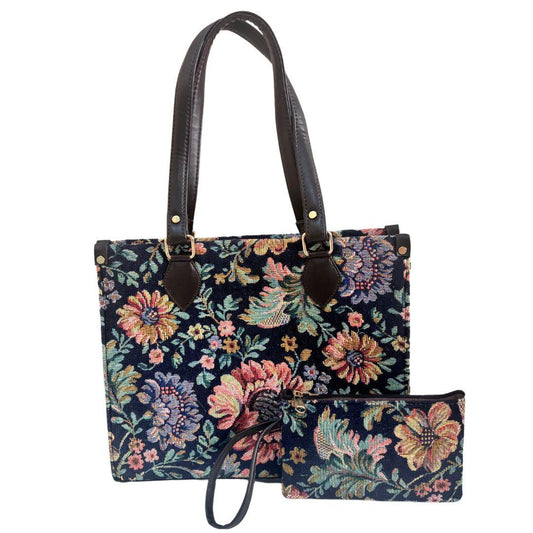Atrangi Edition:- Blue Floral Handcrafted Tote Bag with complimentary Pouch
