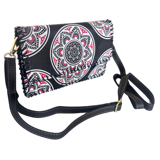 The Virasat Edition:- Black Ethnic Print Wallet & Convertible Sling