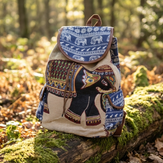 Trekking Paradise Edition: Canvas Elephant Print Drawstring Backpack