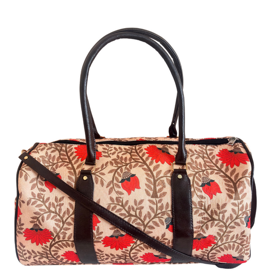 Maharani's Garden Heritage Edition: Royal Courtyard Collection | Hand-Painted Royal Flora Design Duffle