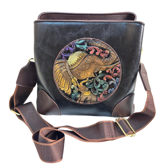 Handcrafted Elephant Design Handbag Convertible Crossbody Bag