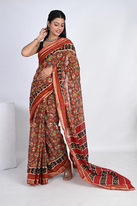 Passionate Red Patola Printed Pure Cotton Saree
