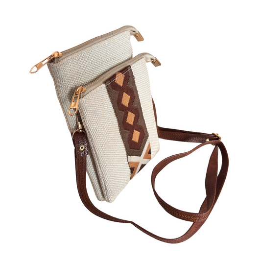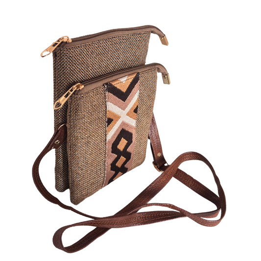 The Handcrafted Multipocket Brown Jute Crossbody Mobile Bag