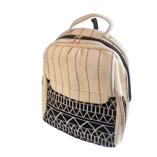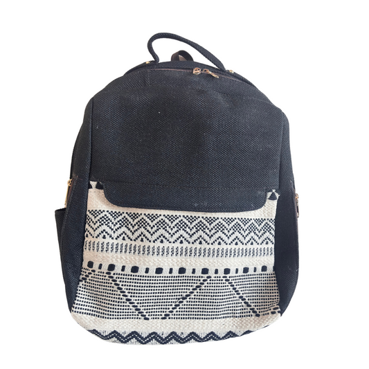 The Aavran Edition:- Premium Geometric Pattern Black Jute Laptop Backpack
