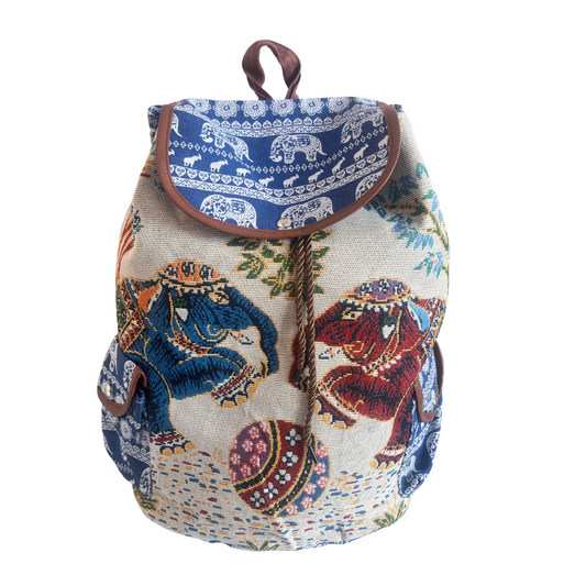 Trekking Paradise Edition: Canvas Elephant Print Drawstring Backpack