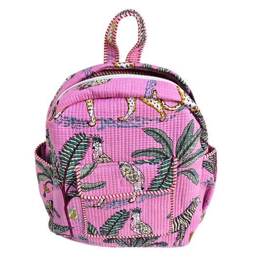 The Jungle Book Edition:- Premium Quilted Pink Cotton Backpack with Animal Print Design - Stylish Eco-Friendly Bag for School, Travel, and Everyday Adventures
