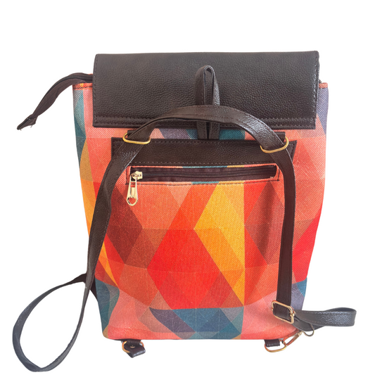 Geometric Sunset Heritage Backpack - Desert Kaleidoscope Collection | Hand-Woven Tribal Pattern