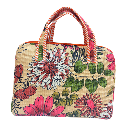 The House of RajPadmini Floral Print Tote Bag with Multiple Compartments