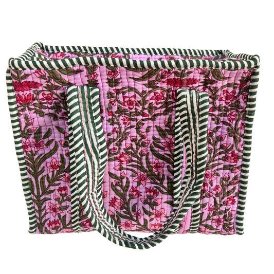 The House of RajPadmini Quilted Cotton Tote Bag | 14x14 Inches