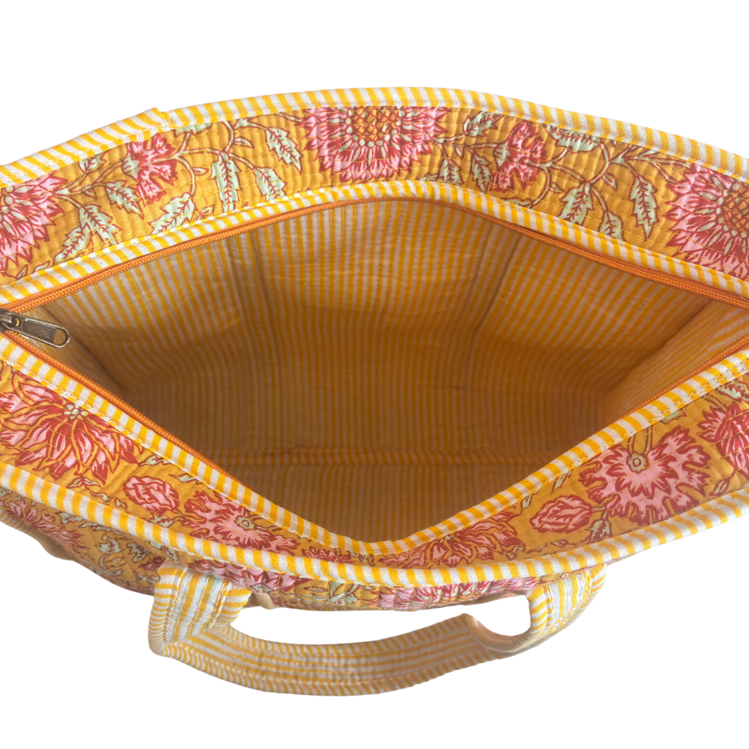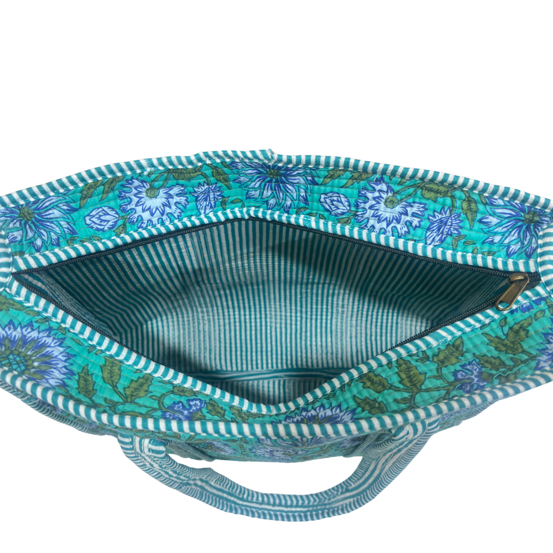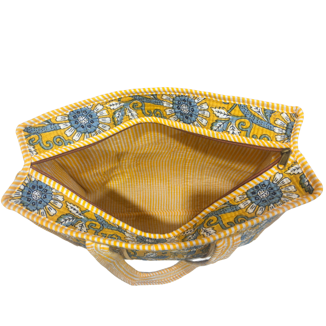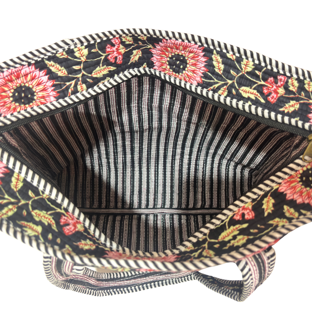 Artisan Quilted Bloom Cotton Tote - Handcrafted Shopping Companion
