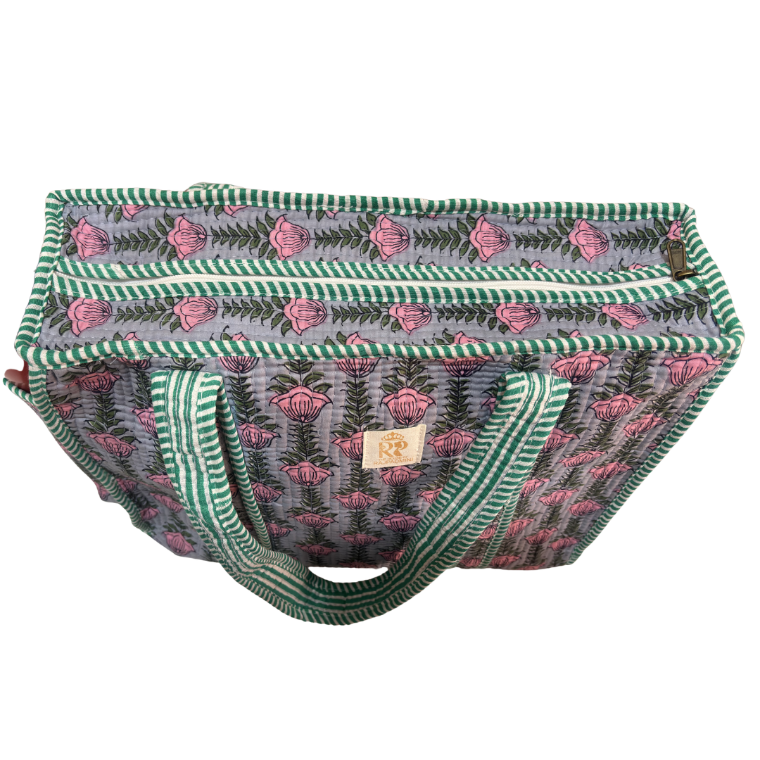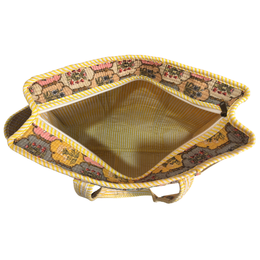 Artisan Quilted Bloom Quilted Cotton Tote - Handcrafted Shopping Companion