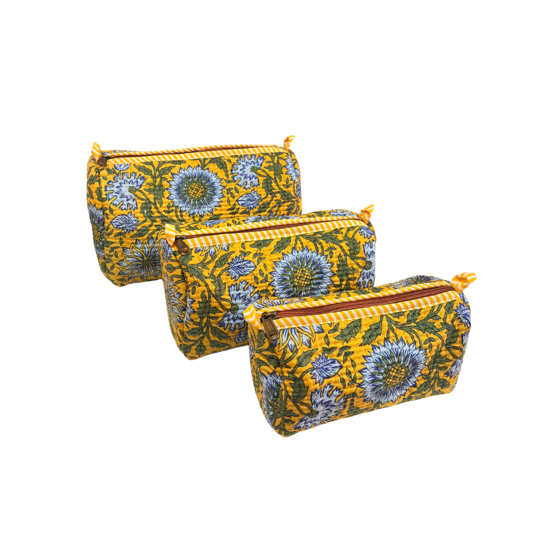 1 Premium Cotton Quilted Tote - Your sturdy daily companion & 3 Waterproof Travel Pouches (Large + Medium + Small) - Your mess-proof organizers