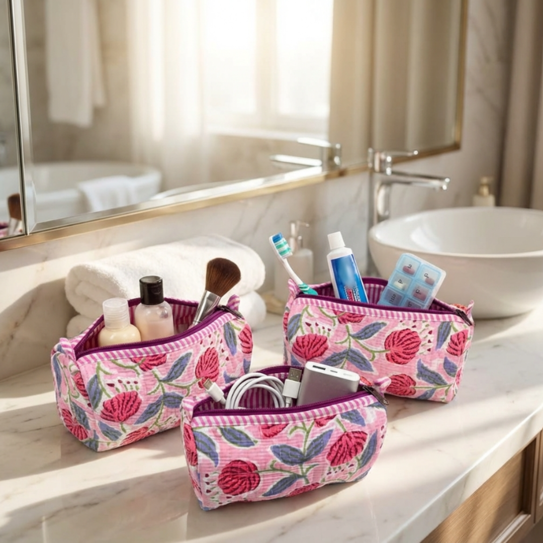 The set of three pouches in varying sizes (11x5x5 inches, 9x5x5 inches, and 7x5x5 inches) allows you to organise your essentials with ease.
