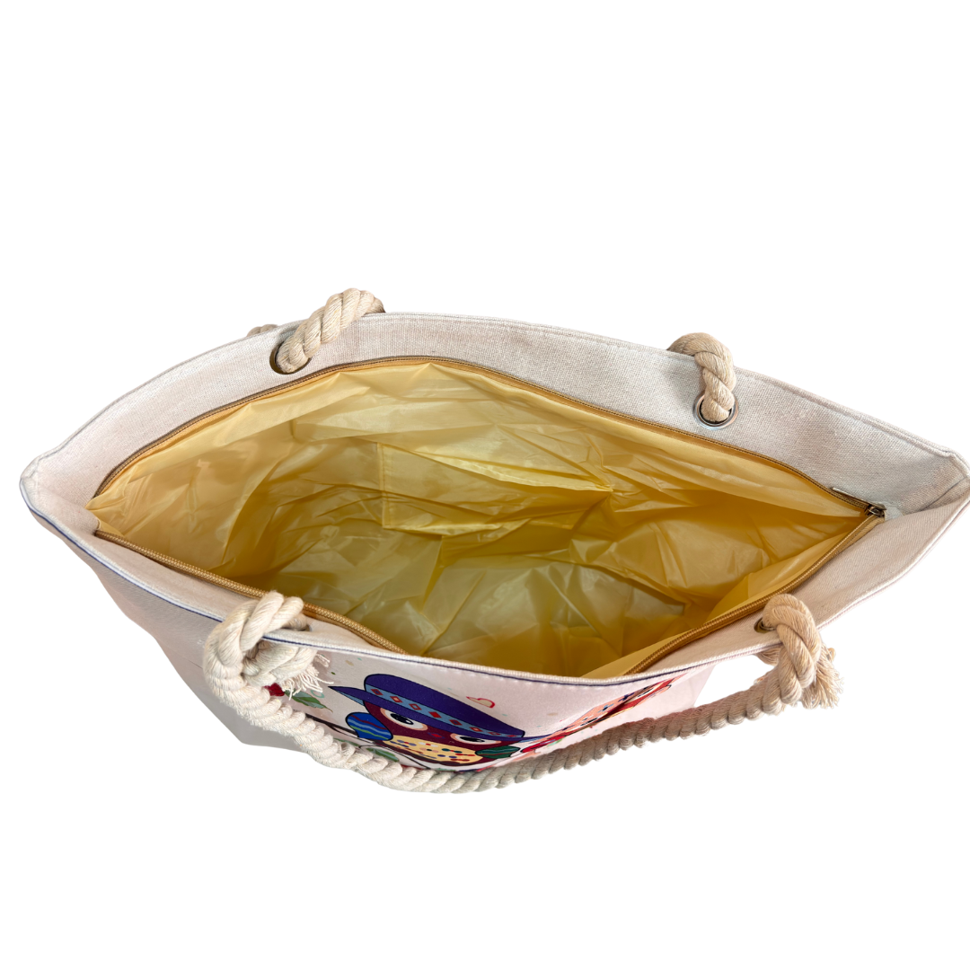 Stylish Design: This beach tote bag features an eye-catching patterns of owl on canvas exterior.