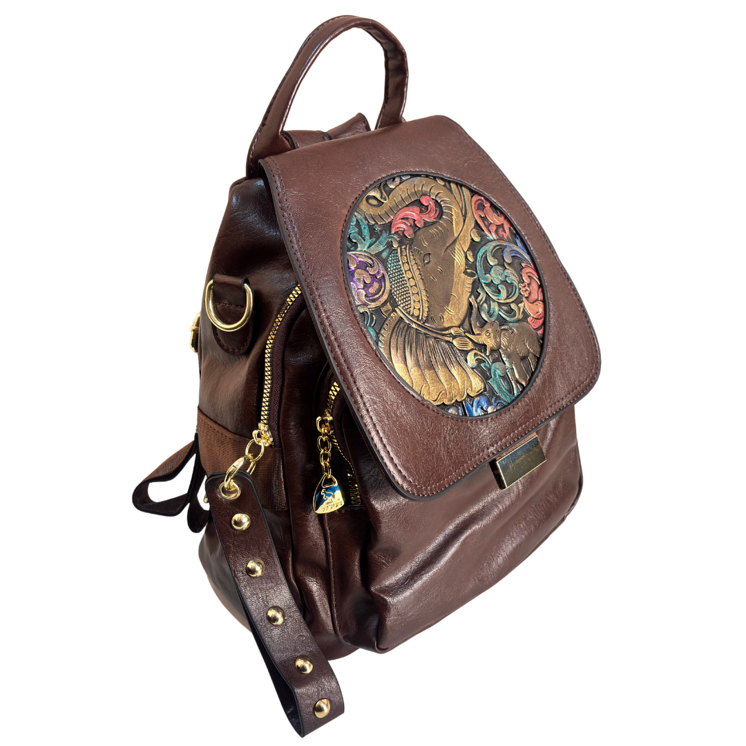 Premium Fabric: Crafted from high-quality cotton blend fabric with elegant floral or decorative patterns, complemented by brown faux leather trims and gold-tone hardware with tassel detailing