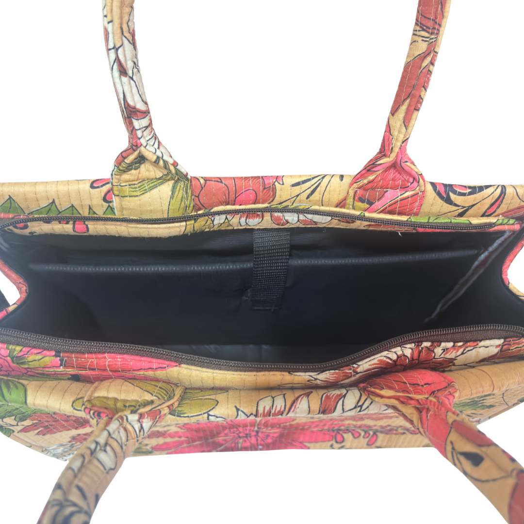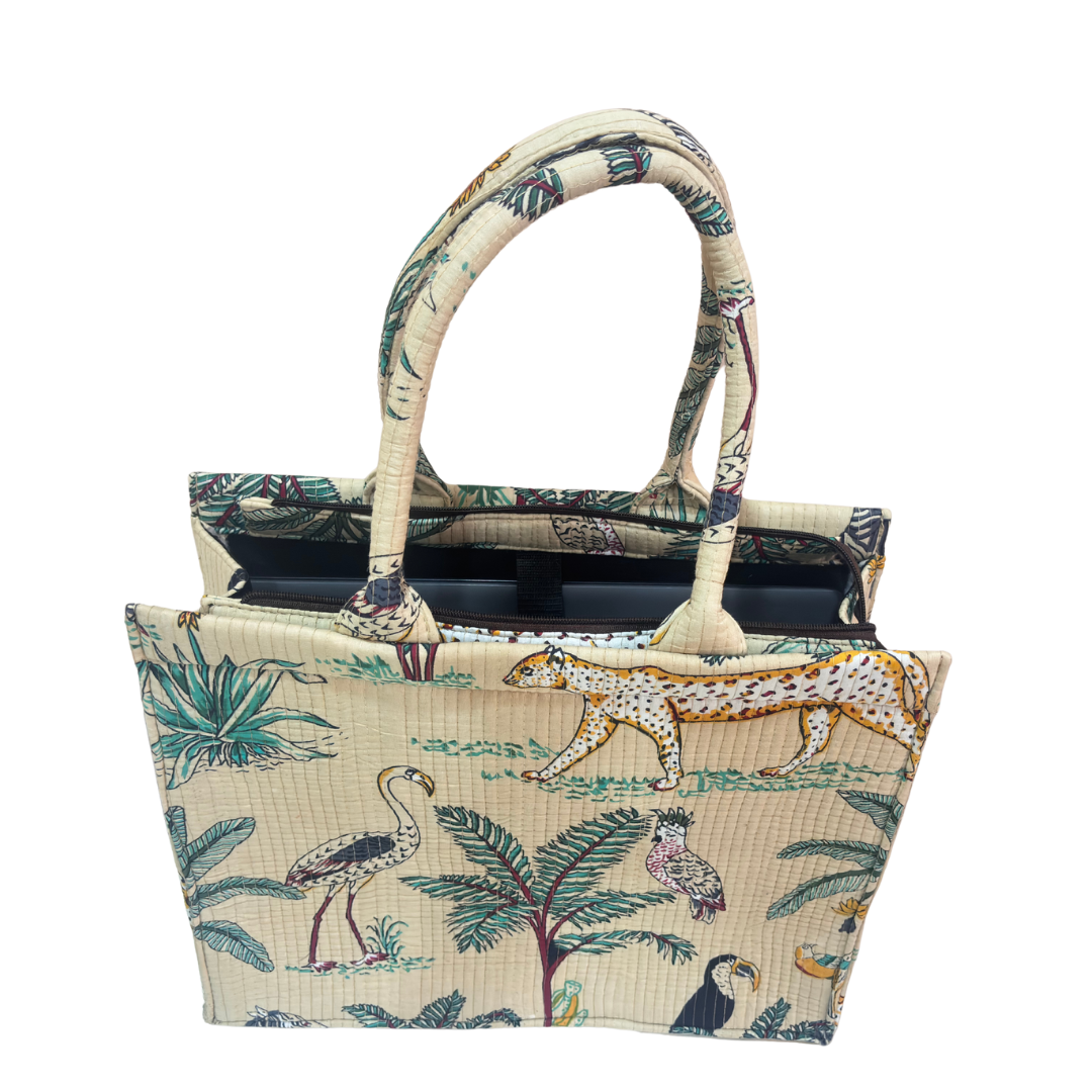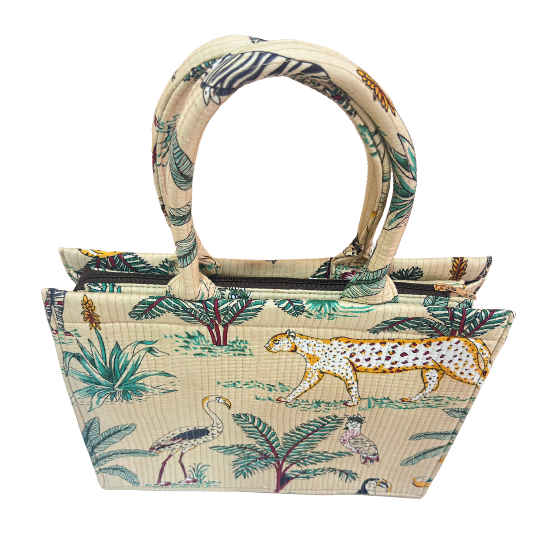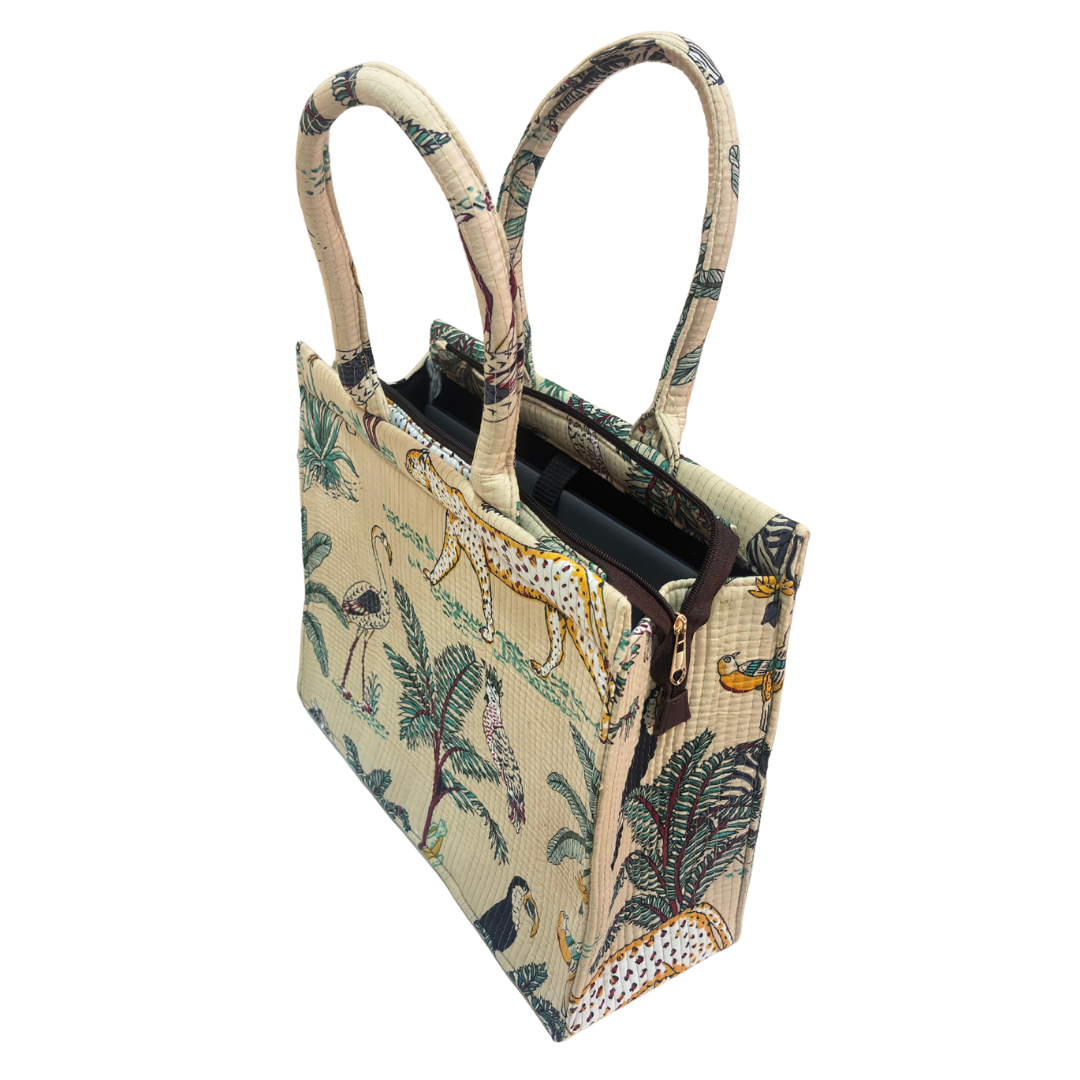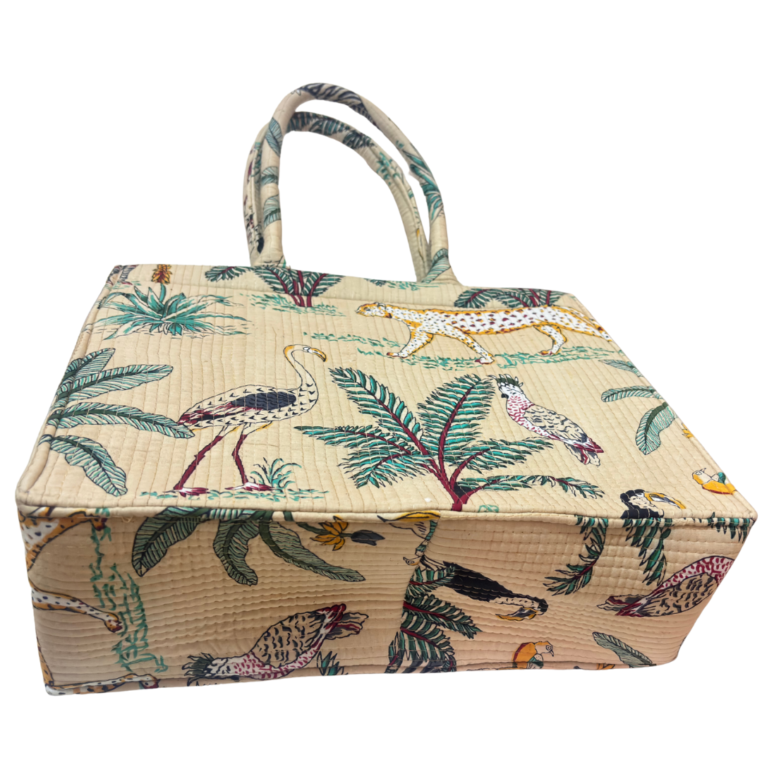 Stylish Design: This quilted tote bag features a striking black animal print pattern with white and golden accents, adding a touch of sophistication to your everyday look.