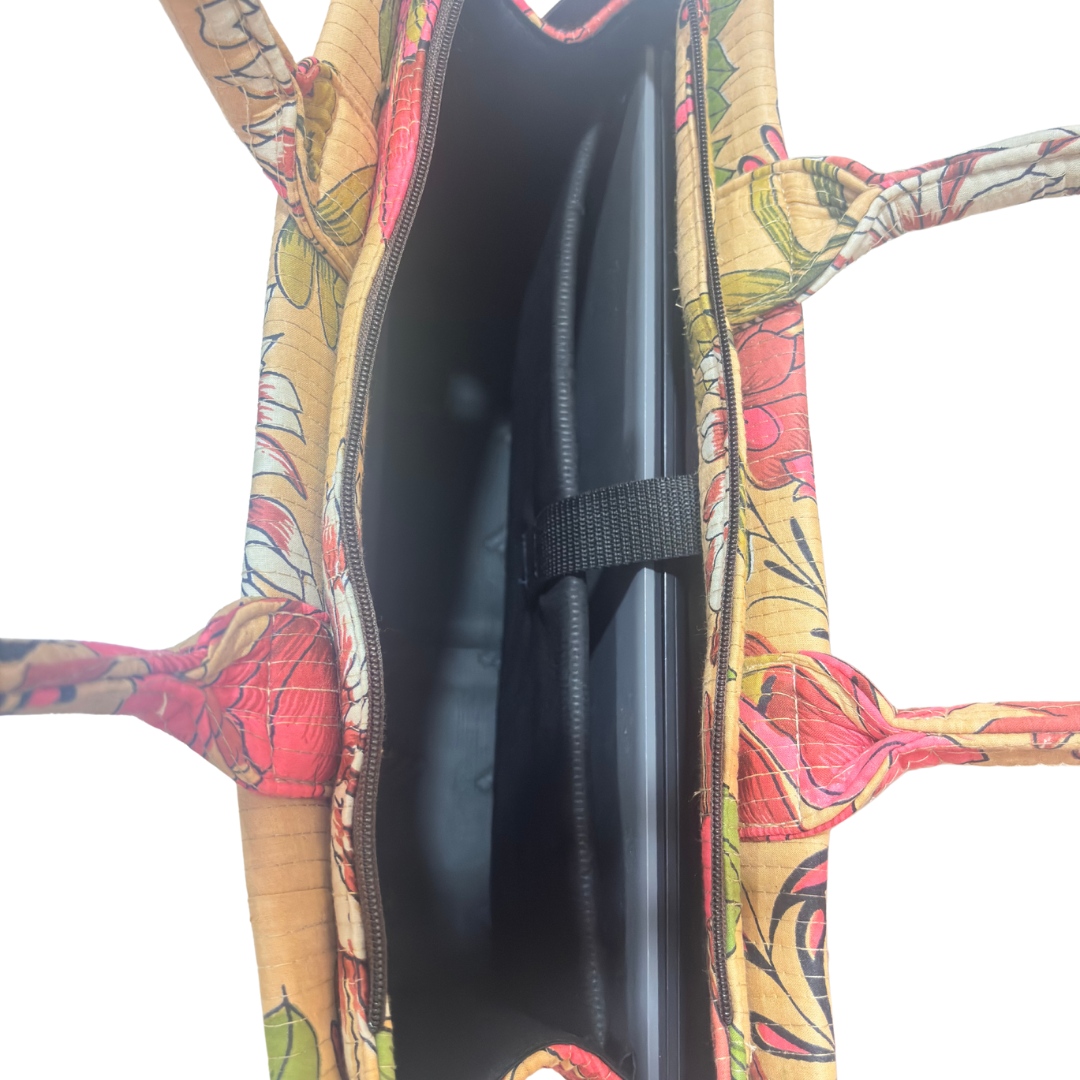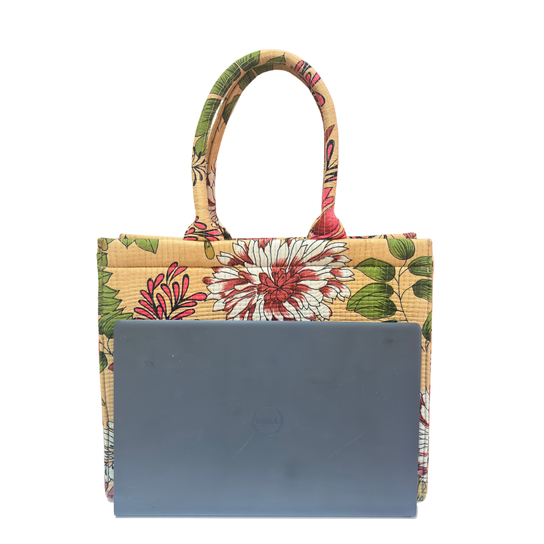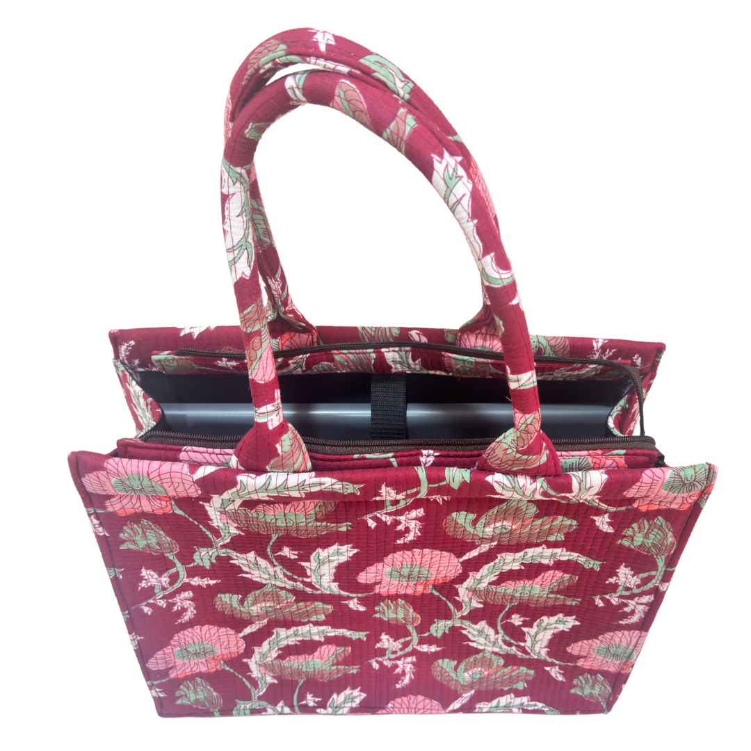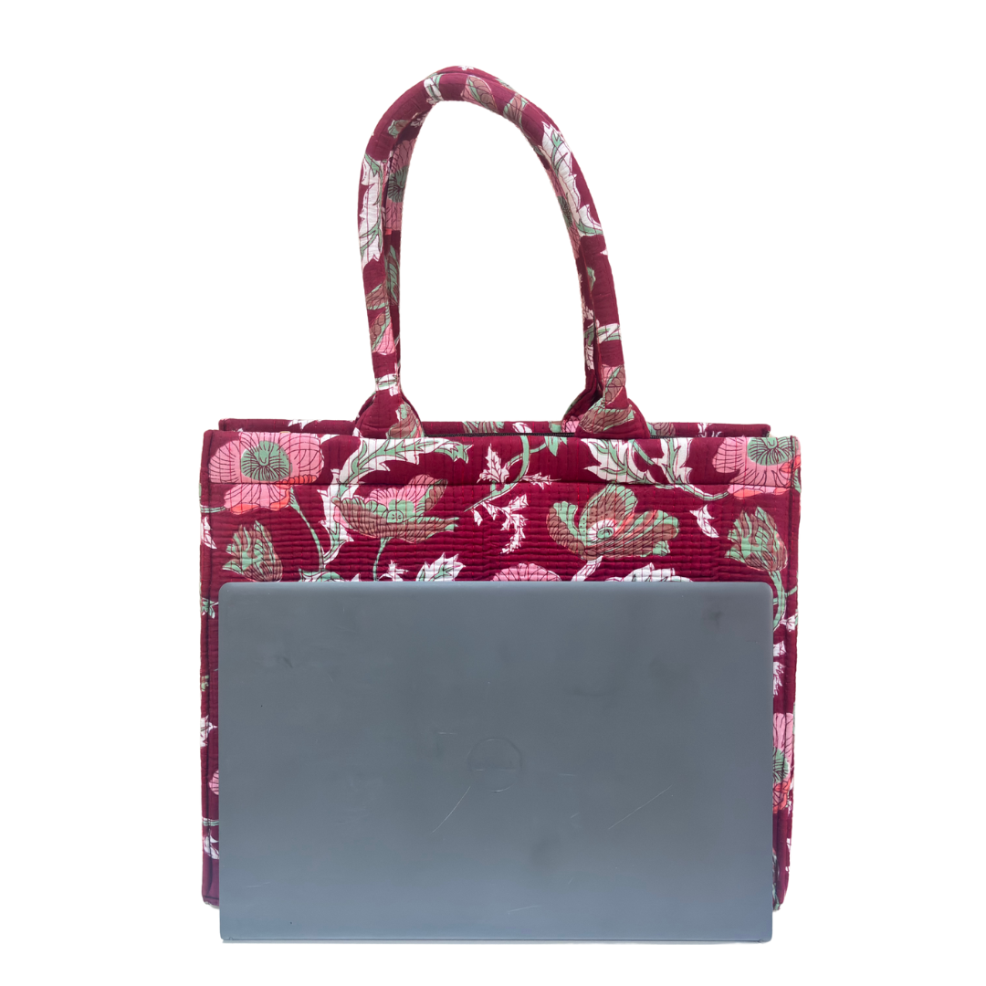 Introducing the House of RajPadmini Premium Quilted Black Laptop Tote Bag with Complementary Pouch for the corporate women β a perfect blend of sophistication and functionality. Crafted with premium quilted material, this sleek black tote bag offers ample space to securely carry your laptop and essentials, all while exuding elegance. The complementary pouch adds extra convenience for organizing smaller items. Whether you're heading to the office or a meeting, this stylish and practical tote from the House of RajPadmini ensures you carry everything you need with effortless chic!